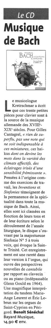 •J.S. Bach : Inventions et Sinfonies à l'orgue de Saint-Cyprien en Périgord (1 CD Bayard-Musique 2012)